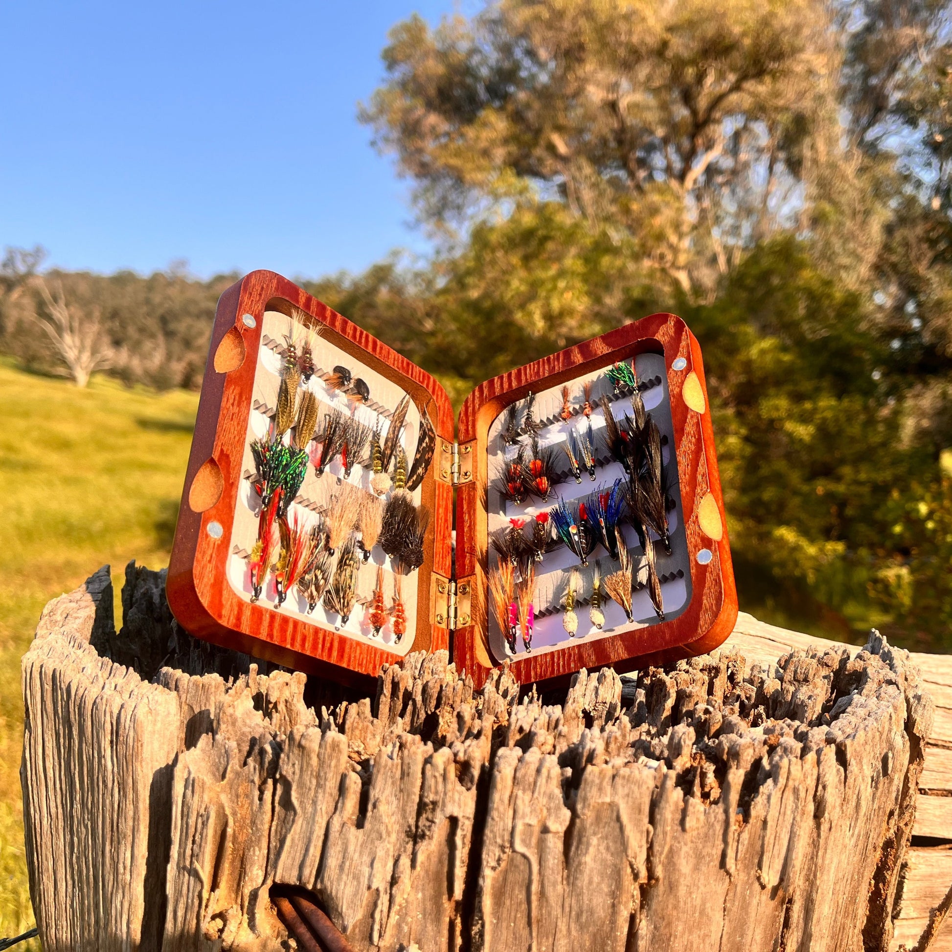 Christmas Special Edition – Neil McCoy's “Freshwater Fishing in South-West Australia” Flies in Wooden Fly Box.